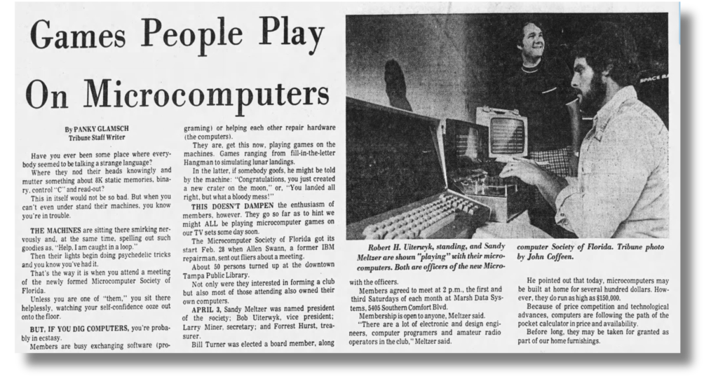Here he is, standing, having helped start the new Microcomputer Society of Florida, in this article in the Tampa Bay Tribune in 1976.